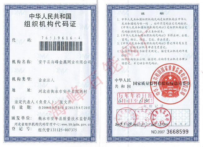 - 安平縣海峰金屬網(wǎng)業(yè)有限公司 安平縣海峰金屬網(wǎng)業(yè)有限公司位于中國著名的“絲網(wǎng)之鄉(xiāng)”——河北省安平縣,是具有拉絲織網(wǎng)、焊接、剪裁、噴塑、浸塑成品等一整套生產(chǎn)工藝的專業(yè)化廠家。本公司經(jīng)過多年來的順勢發(fā)展,現(xiàn)已擁有廣闊的生產(chǎn)廠房和優(yōu)良的辦公環(huán)境,占地8500平方米,在廠職工100余人。擁有高深的技術(shù)人員,高端的生產(chǎn)設備,全自動的機械化生產(chǎn)流水線,站在了軋花網(wǎng)、石籠網(wǎng)同行業(yè)的頂端。 查看更多>>
